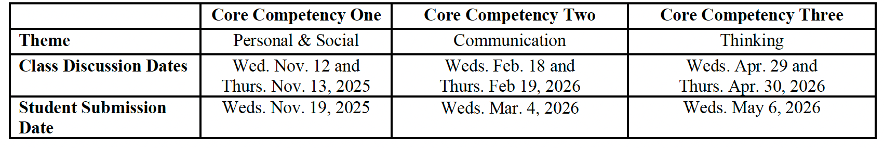 Over the course of the school year, all RHS students in grades 8 to 12 will complete 3 reflections on each aspect of the core competencies. RHS teachers will invite their students to reflect on how an assignment, project or aspect of their class relates to the core competencies. Reflection templates will be provided and posted on students' MS Teams accounts for each term. Students will upload their self-assessments on MS Teams following the schedule below: